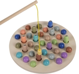Ova drvena magnetna igra pecanja ribica odličan je izbor za razvoj dječjih vještina. Djeca love šarene ribice pomoću magnetnog štapa, sortiraju kuglice i vježbaju manipulaciju sa štipaljkama i paličicama. Podržava logičko razmišljanje, pamćenje i spretnost, a pritom donosi puno radosti.