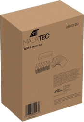 - kutija: pocinčano željezo; karte: papir; igraće sukno: poliester; žetoni: PP; stalak za žetone: PP