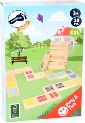 Uživajte u velikoj porciji zabave s XXL dominom od kvalitetnog FSC drva. Set od 28 pločica nudi igru uparivanja boja i uzoraka, razvija finu motoriku, logiku i percepciju boja. Dijelovi su veliki, čvrsti i sigurni za djecu od 3 godine. Idealno za igru kod kuće i na otvorenom. FSC certifikacija, 28 ekstra velikih pločica, obojeni i šrafirani uzorci, prikladno za najmlađe.