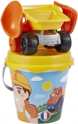 Zabavan set za pijesak za male graditelje sadrži kantić, sito, teretni autić, grabuljice i lopaticu. Idealan za igralište i plažu, s promjerom kantiće 17 cm i visinom 18 cm.