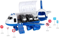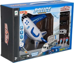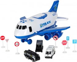 Unutar zrakoplova smjestit ćete 3 policijska vozila i komplet od 7 znakova, koji pomažu djeci razumjeti prometna pravila i rad žurnih službi. Zrakoplov ima praktičnu ručku za nošenje, odvojiva krila radi uštede prostora i glatko kotrljajuće kotačiće za akcijska slijetanja.