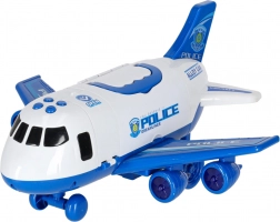 Veliki policijski transportni zrakoplov za male junake preveze cijelu posadu i vozila izravno na mjesto akcije. Nudi bočni panel na otvaranje, stražnju ukrcajnu rampu, svjetla i zvukove te unutra prostor za 3 policijska auta i 7 prometnih znakova. Sjajna igračka za kreativnu igru uloga i učenje prometnih pravila.