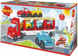 Atraktivan Abrick transporter za prijevoz autića! Transporter je opremljen sklopivom rampom koja omogućuje jednostavno utovar i istovar šest šarenih autića.
