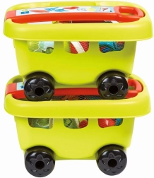 Zabavna i praktična dječja vrtna kolica s kantom i priborom za igru na pijesku i u vrtu. Zahvaljujući laganoj plastičnoj izvedbi i praktičnoj ručki za vuču lako se upravlja. Set sadrži kanticu, sito, zalijevaču, lopaticu, grabljice i kalup – sve za kreativnu zabavu na otvorenom. Dimenzije 31 × 19 × 17,5 cm.