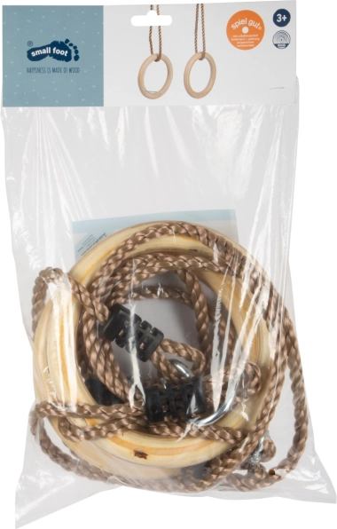 Drveni gimnastički obruči small foot su izvrsni za vježbanje djece koja žele ojačati svoju fizičku kondiciju. Dizajnirani su tako da budu prikladni i za manju djecu zbog promjera obruča i jednostavnog podešavanja duljine užadi.
