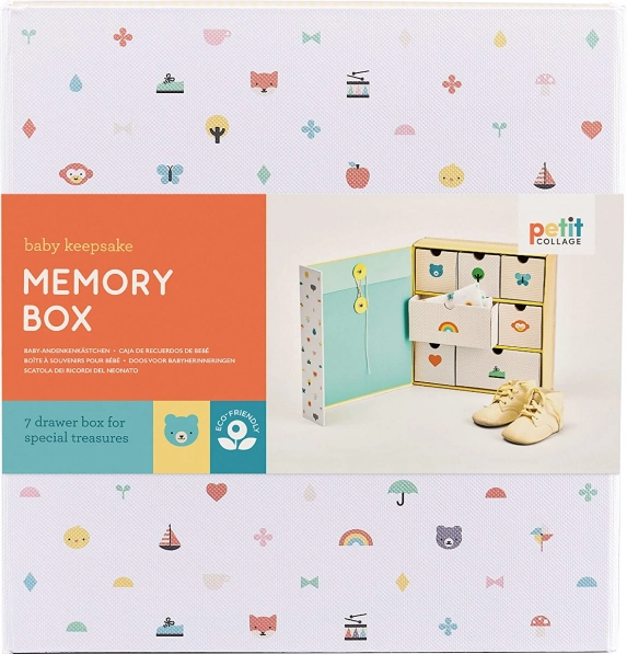 Elegantna i promišljena kutija uspomena pomaže organizirati sve najvrjednije trenutke iz prvih mjeseci i godina djeteta. Zahvaljujući više ladica i džepu, sitnice lako razvrstate i uvijek im se s radošću vraćate. Minimalistički, razigran dizajn s ilustracijama čini kutiju prekrasnim dodatkom dječjoj sobi.