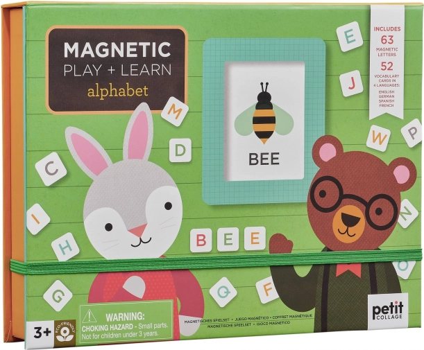 Učite djecu abecedi na zabavan način s prijenosnim setom Petit Collage. Sadrži 52 ilustrirane kartice s riječima i 63 magnetska slova na četiri jezika. Zahvaljujući veselim ilustracijama i šarenim slovima, učenje je prava igra. Preporučeno od 3 godine.