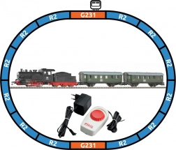 Kompletan početni set za modelnu željeznicu u mjerilu H0 s parnom lokomotivom BR 98 i dva putnička vagona DB, epoha III. Sadrži oval tračnica s podlogom, analogno upravljanje i sve potrebno za trenutačnu vožnju. Izdržljive tračnice s podlogom olakšavaju izgradnju i proširenje kolosijeka.