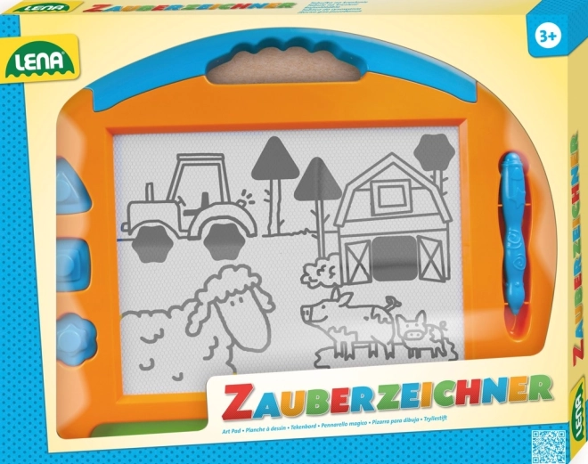Ova magnetna ploča idealna je igračka za prve crteže i učenje oblika. Zahvaljujući praktičnom klizaču sliku možete obrisati u trenu i početi iznova – bez nereda i bez papira. Olovka s metalnim vrhom pričvršćena je uzicom pa se ne gubi, a tri magnetska žiga pomažu u stvaranju zabavnih uzoraka.