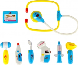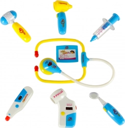 Dio seta su liječnički alati kao što su stetoskop, termometar, tlakomjer, alate za uši, šprica, čekić, liječnički amblem i instrument za pregled grla s osvjetljenjem.