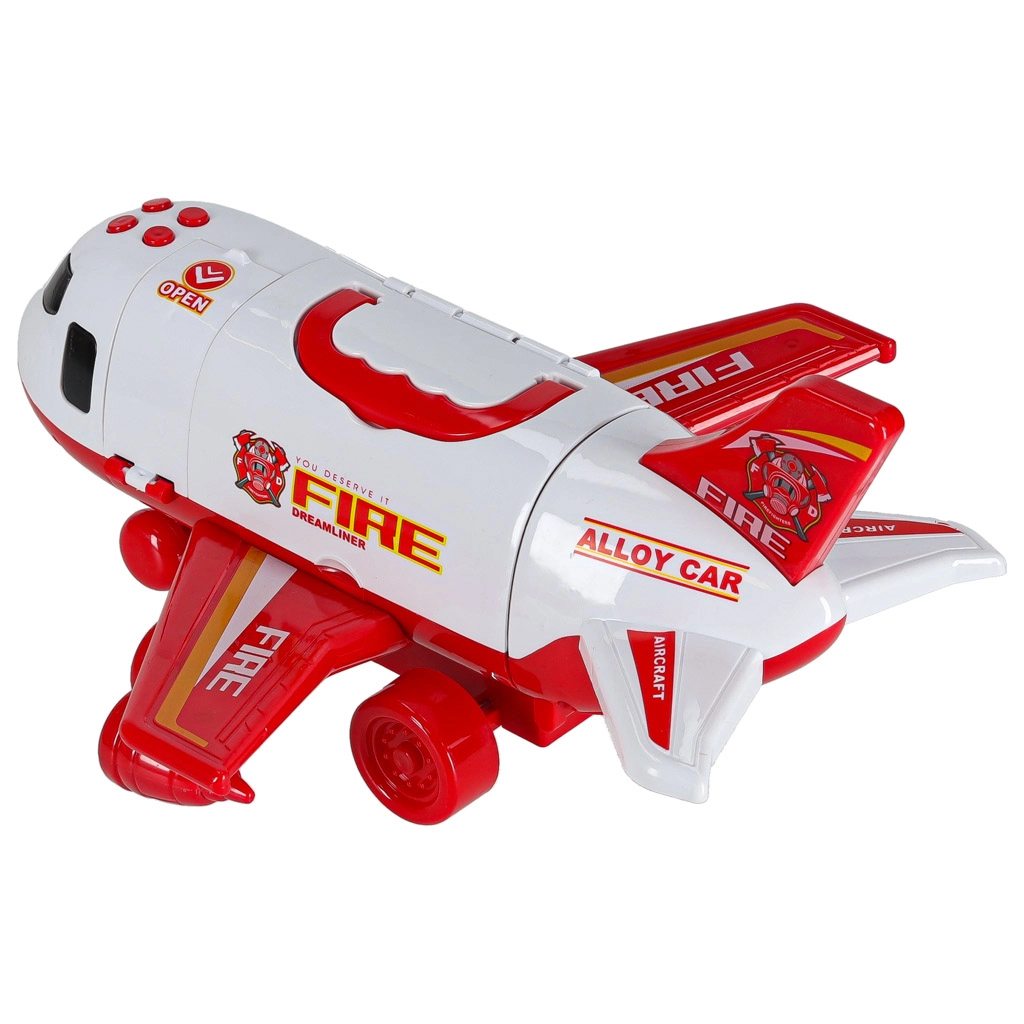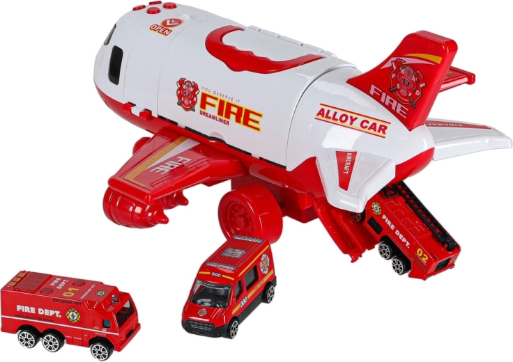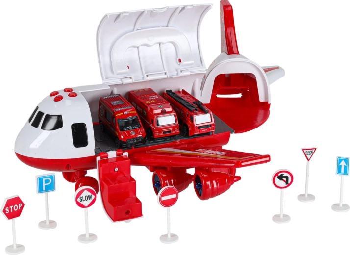U paketu su 3 vatrogasna vozila i set od 7 prometnih znakova. Sve stane u unutrašnjost aviona, pa je i red i spremnost za putovanje zajamčena.