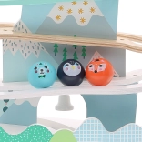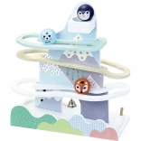 Prekrasna drvena planinska staza s motivima sjeverne zimske faune i flore ilustrirana od Michelle Carlslund. Proizvod ekološki prihvatljiv, koji podržava motoriku i koncentraciju djece. Budite prvi koji će zazvoniti zvoncem i otkrijte hoće li pingvin, medvjed ili lisica stići na cilj!