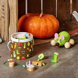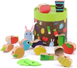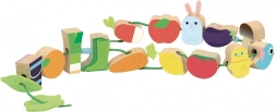 Ova drvena provlačilica s vrtnom tematikom donosi djeci raznoliku paletu oblika i boja koje će zavoljeti. Zahvaljujući sigurnim i glatko obrađenim dijelovima mali istraživači mogu vježbati nizanje, razvrstavanje i imenovanje predmeta s farme. Kompaktno pakiranje idealno je za putovanja i urednu igru kod kuće.