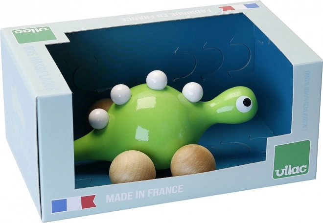 Uživajte u zabavi s drvenim dinosaurusom na kotačićima brenda Vilac. Ovaj simpatični dinosaurus obojen je u zelenu boju i ukrašen bijelim izbočinama na leđima. Zahvaljujući drvenim kotačićima, vaš mali istraživač može se lako voziti s dinosaurom po kući ili na otvorenom.