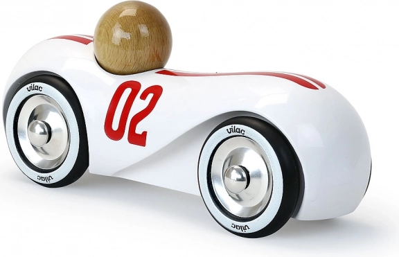 Priuštite djeci i sebi dašak bezvremenske elegancije. Drveni auto VILAC Streamline oduševljava čistim linijama, bijelim lakom i crvenim trkaćim prugama s brojem 02. Metalni kotači s gumenom gaznom površinom omogućuju glatko i tiho kretanje po podu, pa je auto izvrsno rješenje i za igru i za izlaganje.