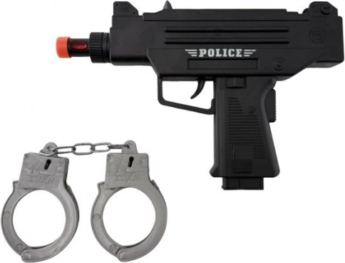 Zabavan set policijske opreme za djecu koji sadrži policijski pištolj i lisice. Idealan za igru policajca, razvoj mašte i role-play kod kuće i na otvorenom.