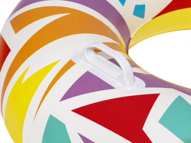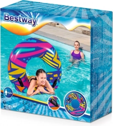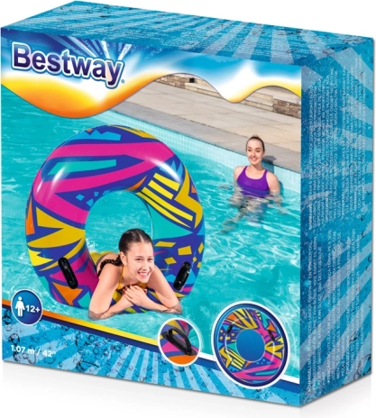 Bestway Geometric napuhujući kolut odličan je izbor za odmor na moru, jezeru ili u kućnom bazenu. Zahvaljujući velikom promjeru od 107 cm prikladan je za korisnike od 12 godina naviše i odrasle. Izdržljivi materijali, sigurnosni ventili i čvrste ručke osiguravaju udobnu i sigurnu vožnju po valovima.