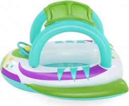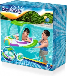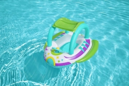 Zahvaljujući stabilnoj konstrukciji od izdržljivog PVC‑a i udobnim ručkama, djeca se mogu sigurno voziti u plitkoj vodi uz nadzor odrasle osobe. Volan s trubom dodaje interaktivnu zabavu i razvija motoriku. Šarena “svemirska” grafika privlači pažnju i potiče maštu tijekom vodenih igara.