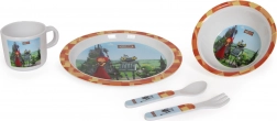 Uživajte u obroku sa svojim vlastitim setom za ručak, koji sadrži tanjur, zdjelu, šalicu i pribor za jelo, sve s motivom viteza Rustyja i njegovih prijatelja.