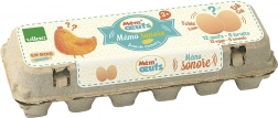 Zvučna pexeso u obliku jaja u klasičnom kartonskom pakovanju je idealno za razvoj senzornih sposobnosti kod djece. Igračka podržava pamćenje tako što djeca traže parove jaja sa istim zvukom.