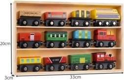 Set sadrži 3 lokomotive i 9 vagona u raznim bojama, pružajući tako raznolikost u zabavi.
