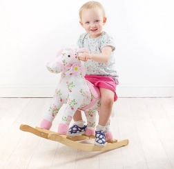 Zahvaljujući mekom plišanom sjedalu i stabilnoj drvenoj konstrukciji, igra na ovom konjiću za ljuljanje je udobna i sigurna.