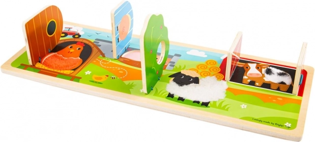 Djeca mogu zaviriti iza vrata i otkrivati skrivene životinje, što potiče finu motoriku, koordinaciju ruka–oko i učenje kroz igru.