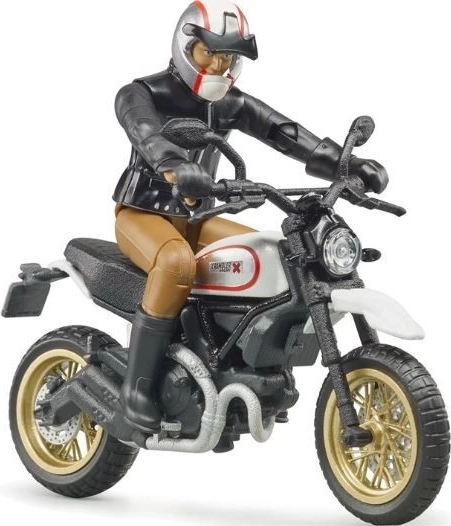 Model Bruder iz serije BWORLD donosi autentičan doživljaj vožnje. Motocikl Scrambler DUCATI Cafe Racer oduševljava realističnim detaljima, od dizajna motora do zlatnih naplataka, a vozač s potpuno pokretnim zglobovima omogućuje dinamične poze i akcijske scenarije. Robusna izrada jamči dug vijek trajanja i sigurnu zabavu.