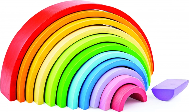 Duga je izrađena od kvalitetnog, odgovorno pribavljenog drva i obojena sigurnim, netoksičnim bojama. Ispunjava aktualne europske sigurnosne norme, pa se možete osloniti na sigurnu i dugotrajnu upotrebu. Nakon završetka igre, raznolika paleta lukova stvara lijep dizajnerski element u dječjoj sobi ili vrtiću.