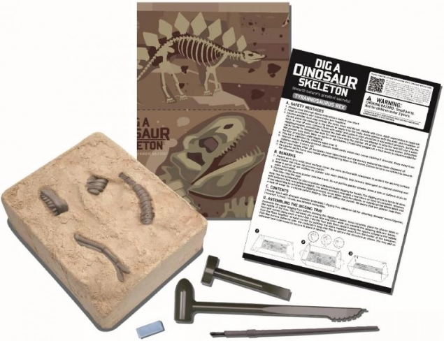 Set sadrži gipsani blok s kostima, osnovne alate za iskopavanje i upute. Dovoljno je otvoriti kutiju i početi istraživati – idealna aktivnost za popodne ili vikend.