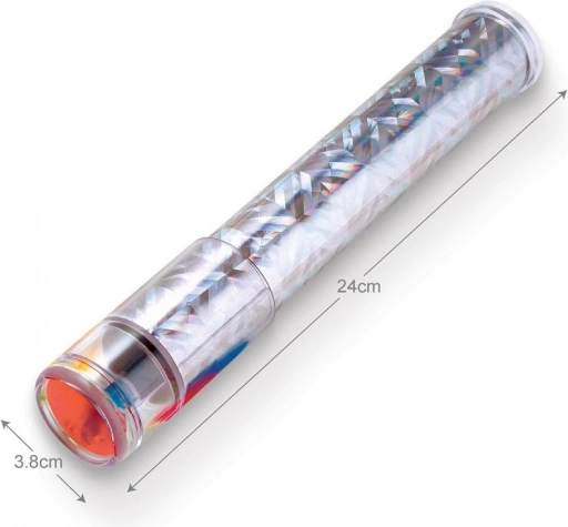 U pakiranju se nalazi sve što je potrebno za izradu funkcionalnog kaleidoskopa duljine oko 25 cm. Zahvaljujući zamjenjivim ulošcima i ukrasima djeca mogu stvarati jedinstvene uzorke od perlica, šljokica i obojenih diskova. Odlično za razvoj fine motorike, mašte i osnovnih optičkih principa.