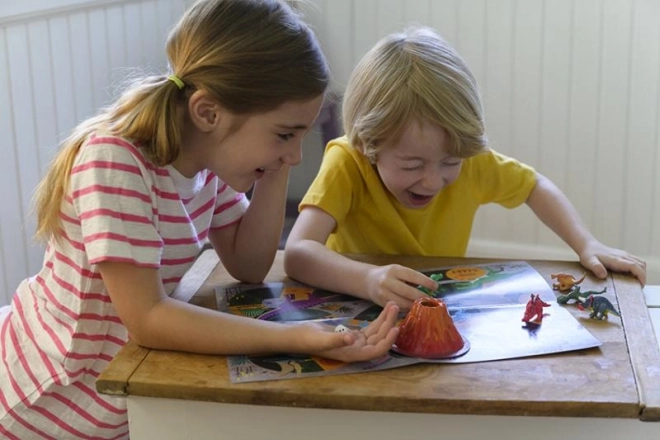Oslikaj 6 dinosaura i vulkan te možeš igrati avanturističku igru i napraviti erupciju vulkana.