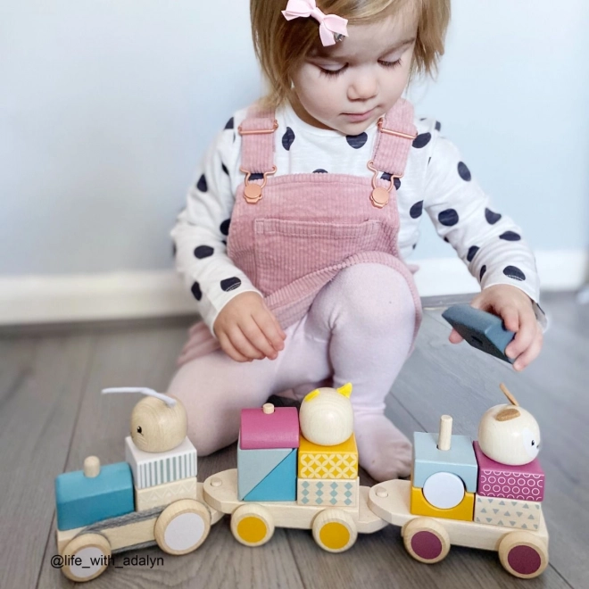 Izrađen od 100% FSC drveta iz odgovorno upravljanih šuma, uz korištenje netoksičnih boja. Kvalitetna izrada jamči dug vijek trajanja i sigurnu igru. Vlakić sadrži lokomotivu, 2 vagona i 3 simpatične životinjske figurice.