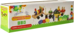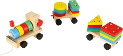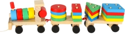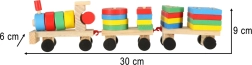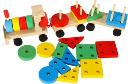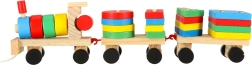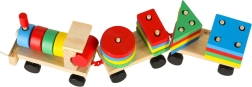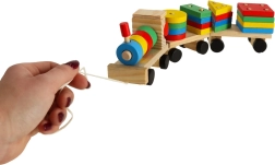 Ovaj kvalitetni drveni vlakić spaja zabavu i učenje u jednom. Zahvaljujući šarenim kockama i slaganju na kolčiće djeca razvijaju finu motoriku, koordinaciju oko–ruka i kreativnost. Igračka ujedno pomaže u prepoznavanju oblika i boja te potiče strpljenje i logičko mišljenje.