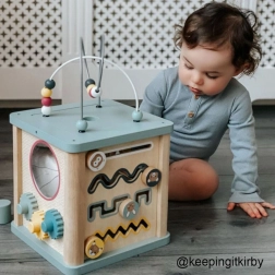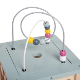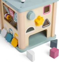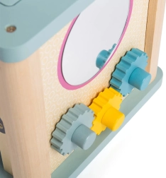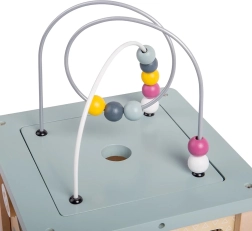 Otkrijte svestranu motoričku kocku od kvalitetnog 100% FSC drva koja će djecu zabaviti na duge sate. Na svakoj strani čeka druga aktivnost – umetaljka, kugličasta staza, zupčanici i još mnogo toga. Kombinacija prirodnog drva i nježnih pastelnih boja idealna je za djevojčice i dječake. Igračka potiče razvoj motorike, komunikacije i prepoznavanja brojeva te je sigurna za djecu zahvaljujući pažljivo odabranim materijalima s certifikatom FSC.