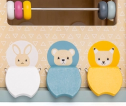Nježne pastelne boje i glatka završna obrada mame na ponovno igranje, dok raznolike aktivnosti potiču različite vještine – od fine motorike do jezičnog razvoja. FSC certifikat jamči održivo porijeklo drva i odgovornu proizvodnju.