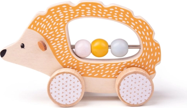 Ovaj simpatični drveni ježić na kotačićima idealan je za razvoj fine motorike vaše djece. Ježić je opremljen kotačima i trima šarenim perlicama na metalnoj šipki, što potiče osjetilni razvoj tijekom igre.