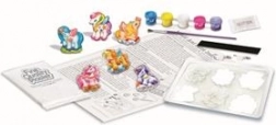 U ovom kreativnom setu možete oblikovati i oslikavati gipsane odljevke. Proizvod sadrži sve što je potrebno za izradu magneta ili broševa u obliku jednoroga.