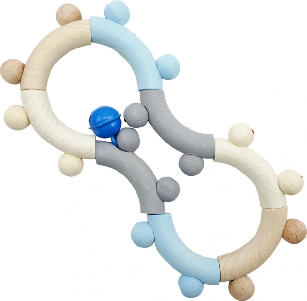 Visokokvalitetna drvena zvečkica, idealna za poticanje mašte i razvoj fine motorike djeteta. Zvečkica oduševljava svojim pastelnim bojama i etički je izrađena od drva iz ekološki upravljanih šuma.