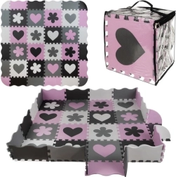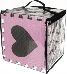 Podloga se može sastaviti na ravno (cca 140 × 140 cm) ili oblikovati ogradica uz pomoć bočnih letvica i kutova. EVA materijal je vodootporan i lako se čisti – dovoljno je obrisati vlažnom krpom. Set dolazi u praktičnom prijenosnom etuiu, pa ga lako ponesete u goste ili pospremite kada se ne koristi.