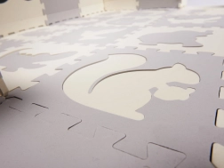 Velikog formata pjenasti dijelovi s izvadivim životinjskim oblicima potiču učenje oblika, kreativnost i finu motoriku. Od dijelova lako složite ravnu podlogu ili ogradicu s povišenim rubovima koja definira sigurnu zonu za igru. Teksturirana površina ugodna je na dodir i ne kliže.