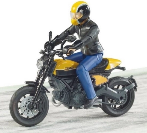 Ovaj detaljno izrađen model motocikla Scrambler DUCATI Cafe Racer od BRUDER-a idealan je za male motocikliste i kolekcionare. Realističnu izradu, od vidljivih elemenata motora do oblika sjedala, upotpunjuje potpuno pokretna figura vozača koja omogućuje prirodne vozačke i akcijske položaje.