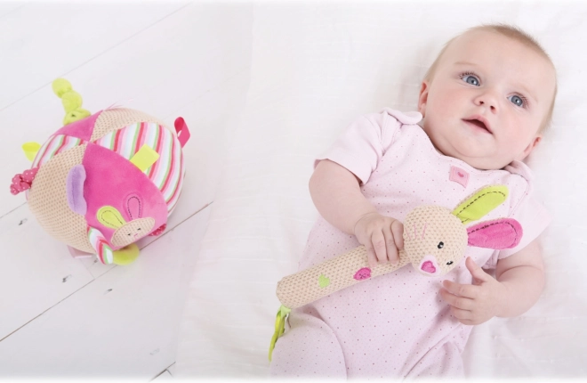 Ova šarena tekstilna lopta unosi radost i istraživanje u dječji svijet. Stvorena je s ciljem poticanja osjetilnog i motoričkog razvoja beba. Djecu će oduševiti razne teksture i boje koje lopta nudi.