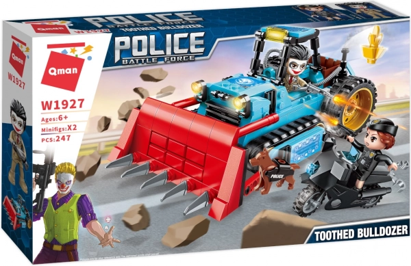 Akcijski građevni set Qman Police Battle Force donosi napetu potjeru za zločincem i njegovim opasnim bagerom. Set nudi 247 dijelova, 2 figurice i pokretnu ralicu. Kompatibilan je s drugim građevnim setovima, izrađen od izdržljive i neškodljive ABS plastike te odlično potiče kreativnost i finu motoriku djece od 6 godina naviše.