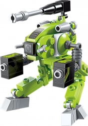 Set omogućuje izradu različitih modela, uključujući velikog oklopnog robota, a kompatibilan je s drugim građevnim setovima.