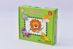 Umetni slagalica Životinje i vodeno bojanje idealna je kombinacija za razvoj mašte i fine motorike. Djeca mogu uživati u šest različitih slika – zec, slon, žirafa, lav, zebra i tigar.