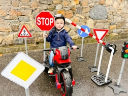 Sa setom dječjih prometnih znakova svaki prostor pretvorit ćete u zabavno i edukativno prometno igralište. Zahvaljujući visini od 81 cm znakovi su dobro vidljivi i stabilni, pa su prikladni za kućnu i vanjsku upotrebu. Jednostavno sastavljanje omogućuje početak igre u trenu.
