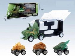 Otkrijte jedinstveni dinosaurovski kamion koji će oduševiti svako dijete kombinacijom svijeta dinosaura i automobila. Tegljač u obliku dinosaura privlači pažnju na prvi pogled, a priložena 3 autića na navijanje osiguravaju dinamičnu igru kod kuće i na putu.