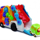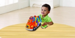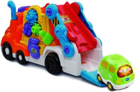 Servisno vozilo Tut Tut od VTecha idealan je pratitelj za djecu koja žele uživati u zabavi i istovremeno učiti. Igračka može prevoziti do četiri mala Tut Tut autića i prepuna je interaktivnih elemenata koji razvijaju motoričke vještine i maštu. Zahvaljujući “Smart point” kontaktnim točkama reproducira tri pjesmice i nudi niz zabavnih fraza, što pomaže u razvoju rječnika djece.