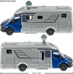 Model je službeno licenciran markama HYMER i MERCEDES-BENZ te nudi atraktivnu kombinaciju unutarnjeg i vanjskog osvjetljenja i 2 realistična zvuka – zvukovi prirode i motora – aktiviranih pritiskom na poklopac motora. Otvarajuća vrata, okretna satelitska antena i gume s gaznim slojem osiguravaju glatku vožnju i mnoštvo scenarija za igru kod kuće i na putu.